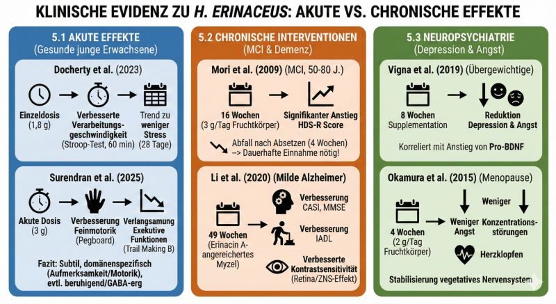 Die klinische Forschung zeigt ein differenziertes Bild: Die Wirkung von H. erinaceus variiert abhängig vom Alter und kognitiven Status der Probanden signifikant.