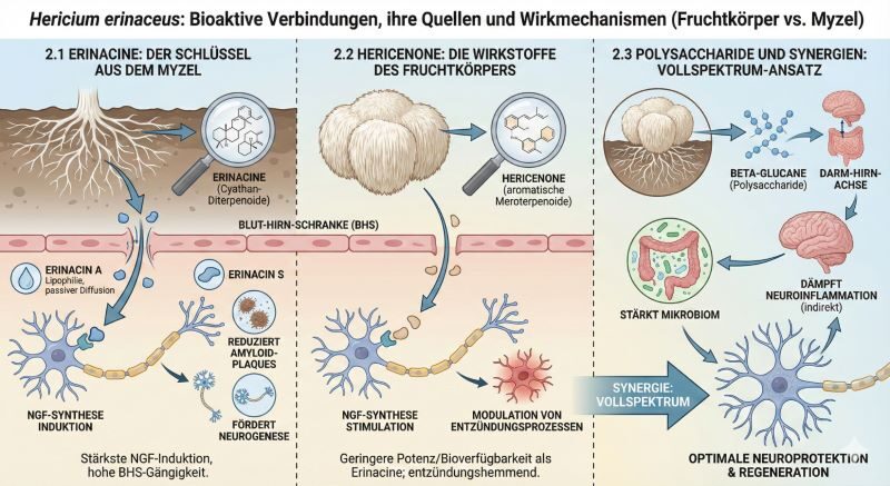 Das synergistische Zusammenspiel von Erinacinen (Myzel) und Hericenonen (Fruchtkörper)